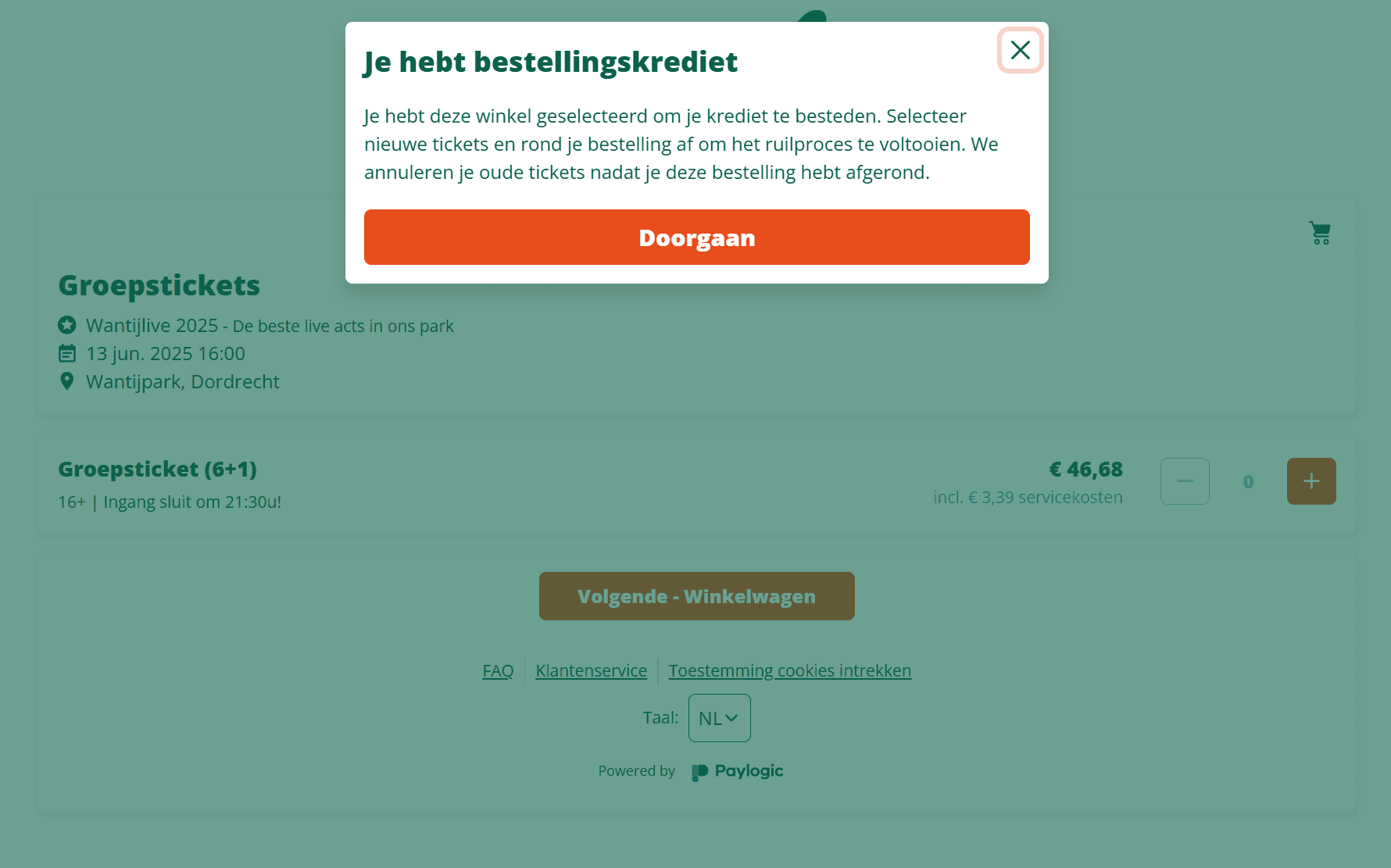 Selecteer het groepsticket en klik onderin op ‘Volgende – Winkelwagen’.