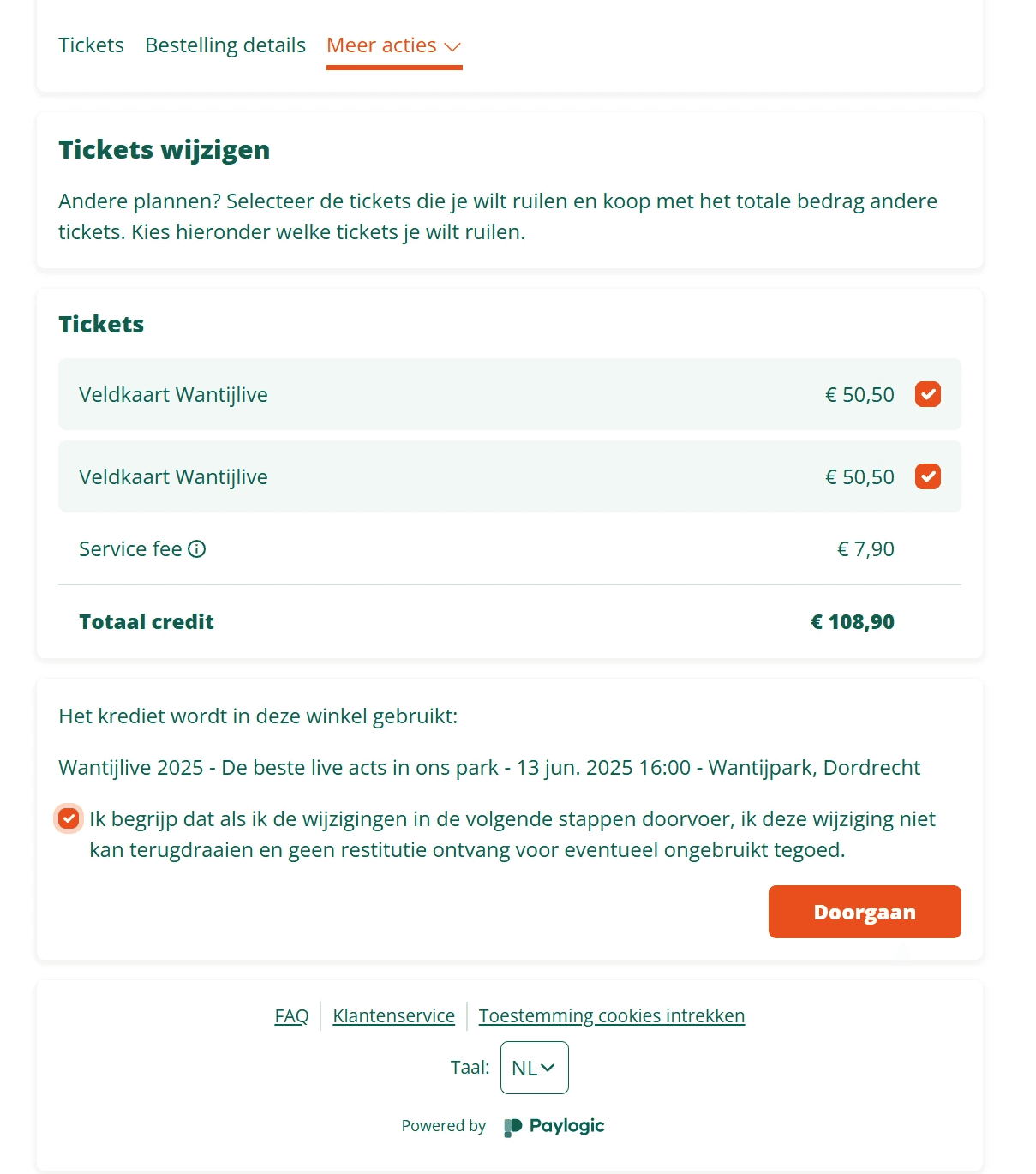 Let op: Je oude tickets worden geannuleerd bij het ruilproces.