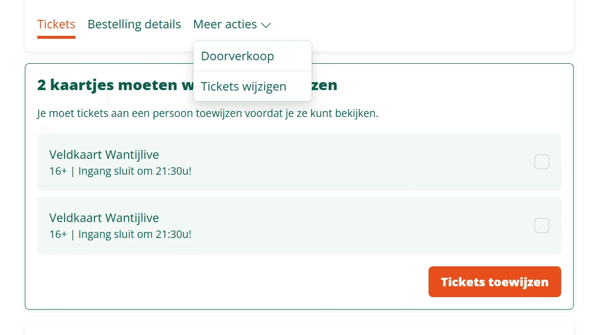 Ga onder Meer acties naar -> ‘Tickets wijzigen’.